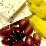 Seven inch pita brushed with extra virgin greek olive oil, and layered with fresh tomatoes, garlic, calamata olives, salonica peppers, pasturized feta and kaseri cheese